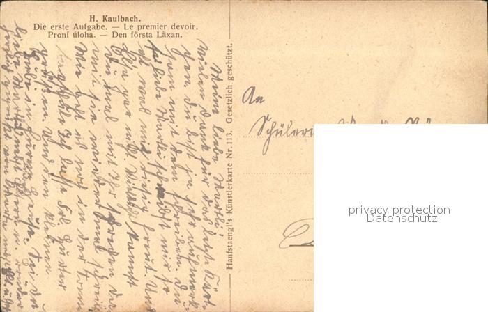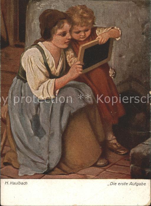 11746297 Kaulbach Hermann Die erste Aufgabe Kind Mutter Schultafel KatCode 22240000002900