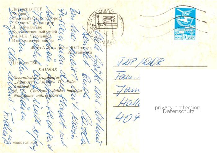 old postcard Kaunas Kowno Snamiescio fragmentas Jaunyste postalisch gelaufen Erhaltung siehe scans [WerneD78]