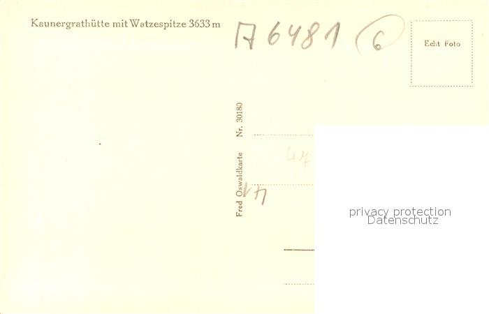 43260197 Kaunergrathuette mit Watzespitze postalisch nicht gelaufen Erhaltung siehe scans [LiesaD40] KatCode: 11390334070611