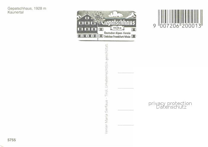 72890790 Kaunertal Gepatschhaus postalisch nicht gelaufen Erhaltung siehe scans [AndreD76] KatCode: 11390334070611