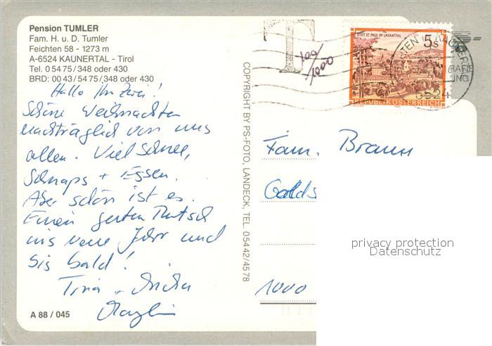 73630002 alte Postkarte Kaunertal Pension Tumler Gaststube Zimmer Panorama postalisch gelaufen Erhaltung siehe scans [WerneD78] KatCode: 11390334070611