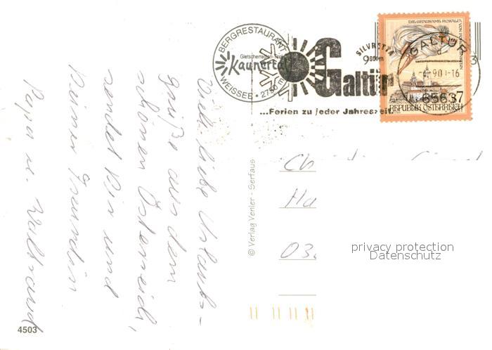 72914257 alte Postkarte Kaunertal postalisch gelaufen Erhaltung siehe scans [PaolaD17] KatCode: 11390334070611