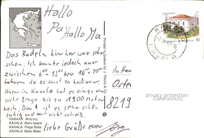 old postcard Kavala Cavala Batis Beach Strand postalisch gelaufen Erhaltung siehe scans