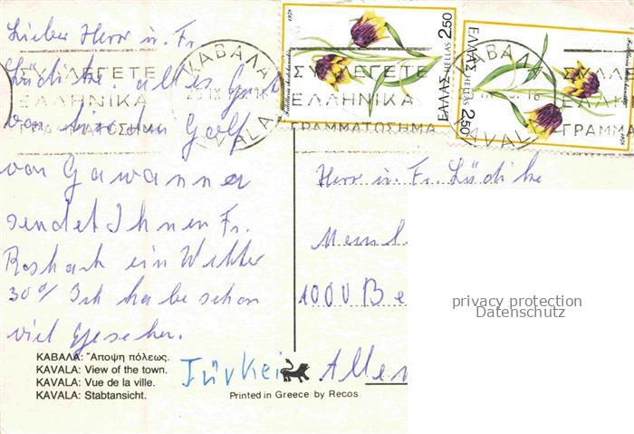 74142177 old postcard Kavala Cavala Greece Vue de la ville et le port postalisch gelaufen Erhaltung siehe scans [FriedD77] KatCode: 11190