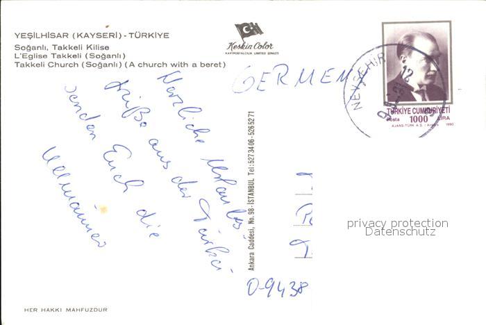 old postcard Kayseri Takkeli Church Soganli postalisch gelaufen Erhaltung siehe scans