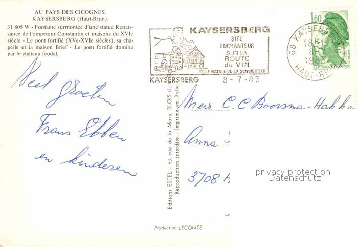 12687366 Kaysersberg Haut Rhin Fontaine Statue renaissance Pont fortifie Chapelle Maison Brief Chateau feodal KatCode 11170068568162