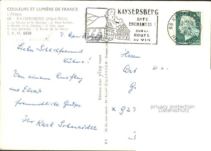12266279 carte postale Kaysersberg Haut Rhin Le Musee Donjon Une Cave Bords de la Weiss postalisch gelaufen Erhaltung siehe scans KatCode: 11170068568162