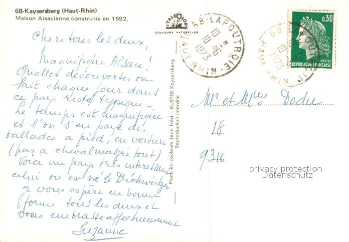 carte postale Kaysersberg Haut Rhin Maison Alsacienne construite en 1592 postalisch gelaufen Erhaltung siehe scans [FriedD77]