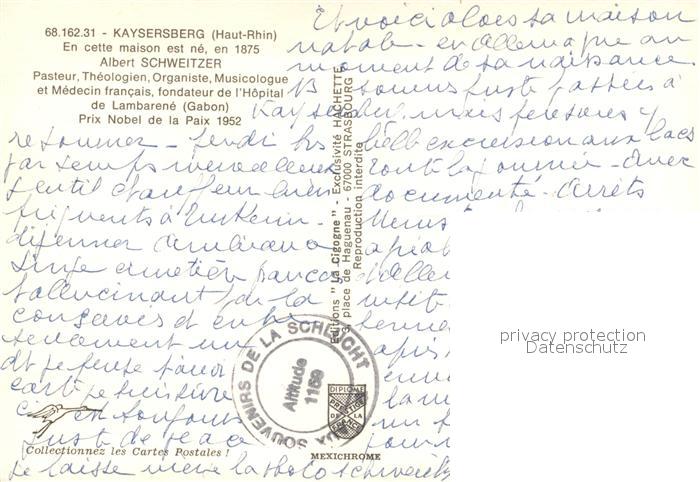Kaysersberg Haut Rhin Maison natale d Albert Schweitzer postalisch nicht gelaufen Erhaltung siehe scans [FriedD77]