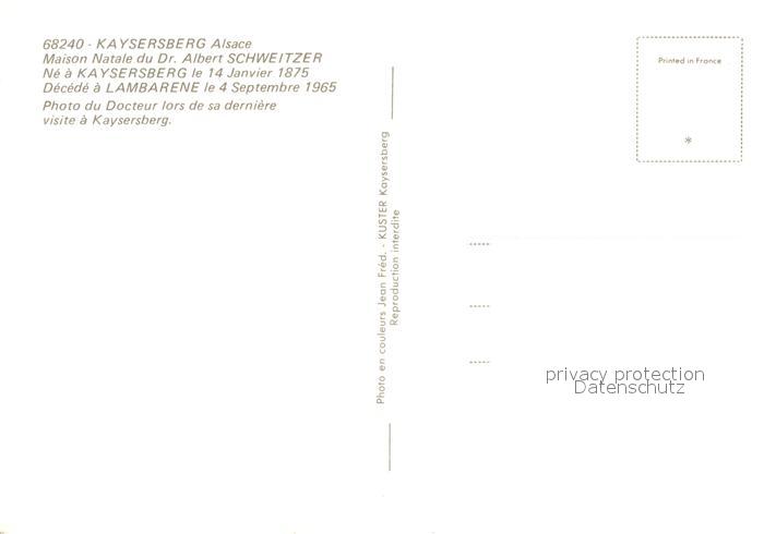 12972660 Kaysersberg Haut Rhin Maison natale du Dr Albert Schweitzer Portrait postalisch nicht gelaufen Erhaltung siehe scans [FriedD77] KatCode: 11170068568162