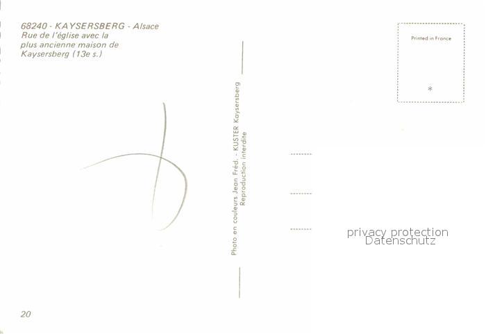 12663972 Kaysersberg Haut Rhin Rue de L eglise postalisch nicht gelaufen Erhaltung siehe scans [AndreD76] KatCode: 11170068568162