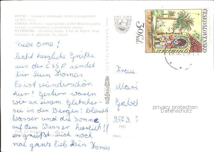 old postcard Kdyne Camping Turm Badeanstalt postalisch gelaufen Erhaltung siehe scans