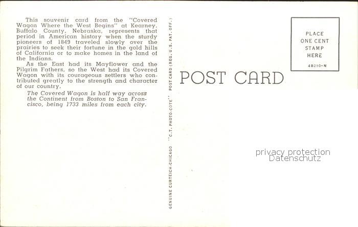 11688390 Kearney Nebraska Covered Wagon Planwagen postalisch nicht gelaufen Erhaltung siehe scans KatCode: 14140290000000