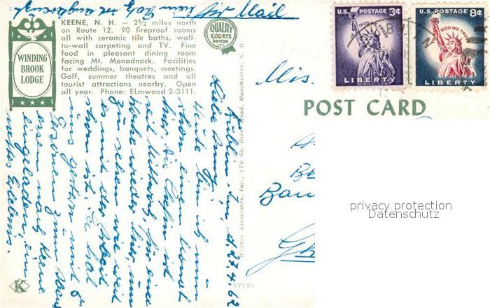 73047664 old postcard Keene New Hampshire Winding Brook Lodge Gastraum Swimmingpool postalisch gelaufen Erhaltung siehe scans [WerneD78] KatCode: 14140310000000
