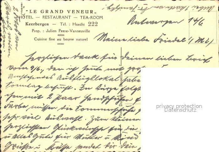 71944315 Keerbergen Le Grand Veneur Hotel Restaurant postalisch nicht gelaufen Erhaltung siehe scans KatCode: 11070024004142