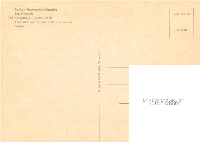 73323581 Kehl Rhein Balkan Restaurant Opatija postalisch nicht gelaufen Erhaltung siehe scans [FriedD77] KatCode: 11110008317057