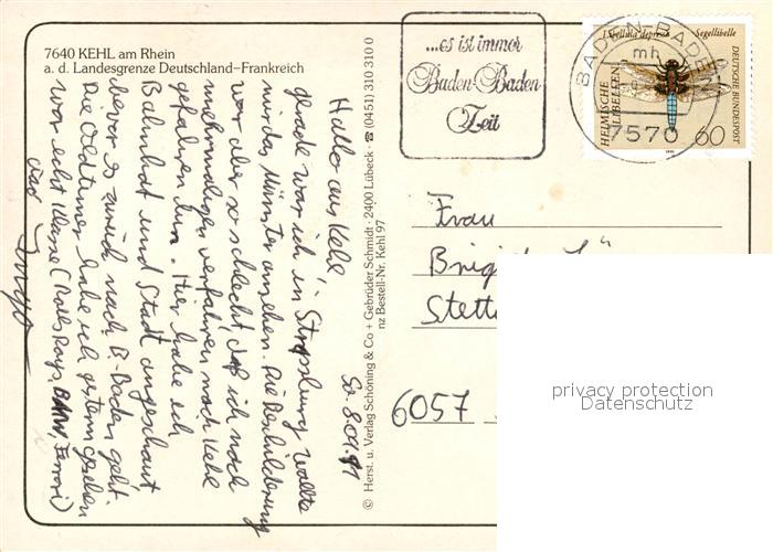 73225323 alte Postkarte Kehl Rhein Brueckenpartie Park Brunnen postalisch gelaufen Erhaltung siehe scans [LiesaD40] KatCode: 11110008317057
