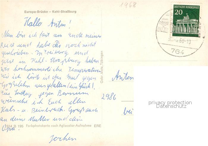 72933566 alte Postkarte Kehl Rhein Europabr?cke nach Stra?burg postalisch gelaufen Erhaltung siehe scans [LiesaD40] KatCode: 11110008317057