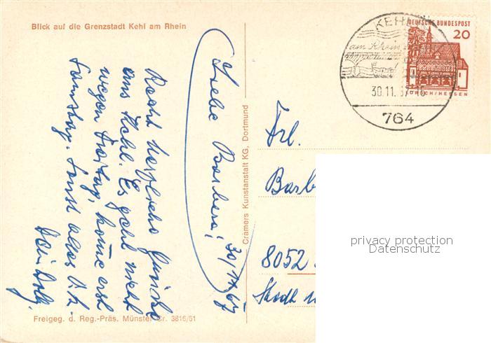 73779960 alte Postkarte Kehl Rhein Fliegeraufnahme postalisch gelaufen Erhaltung siehe scans [WerneD78] KatCode: 11110008317057