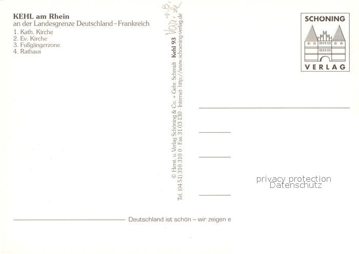 73197694 Kehl Rhein Katholische Kirche Rathaus Fussgaengerzone postalisch nicht gelaufen Erhaltung siehe scans [NatalD47] KatCode: 11110008317057