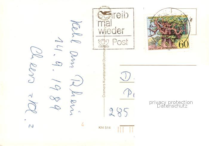 73599913 alte Postkarte Kehl Rhein Landesgrenze Deutschland Frankreich Europabruecke Marktplatz Stadtweiher Kirche Bahnhof Rheinhafen Hauptstrasse postalisch gelaufen Erhaltung siehe scans [FriedD77] KatCode: 11110008317057