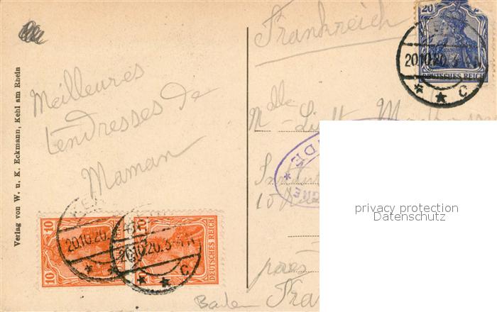43510736 alte Postkarte Kehl Rhein Neue katholische Kirche postalisch gelaufen Erhaltung siehe scans [FriedD77] KatCode: 11110008317057