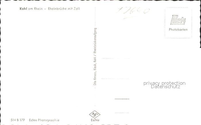 41768076 Kehl Rhein Rheinbruecke Zoll postalisch nicht gelaufen Erhaltung siehe scans KatCode: 11110008317057