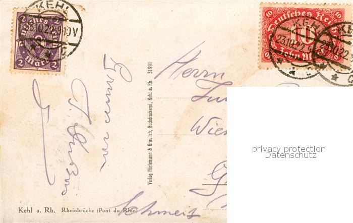 73798365 alte Postkarte Kehl Rhein Rheinbruecke postalisch gelaufen Erhaltung siehe scans [WerneD78] KatCode: 11110008317057