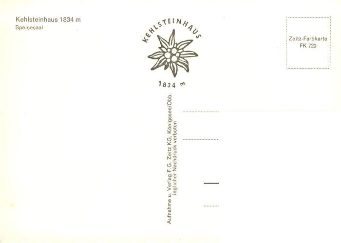 73878250 alte Postkarte Kehlsteinhaus 1834m Berchtesgaden Speisesaal postalisch gelaufen Erhaltung siehe scans [WerneD78] KatCode: 11110009172116