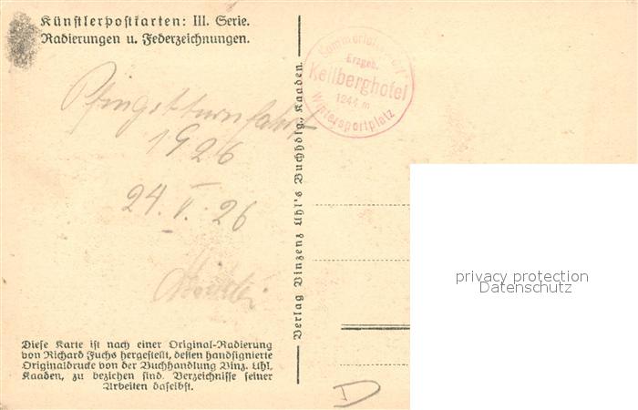 Keilberg Tschechien Keilberghotel III. Serie Radierungen und Federzeichnungen Richard Fuchs Kuenstlerkarte postalisch nicht gelaufen Erhaltung siehe scans [FriedD77]