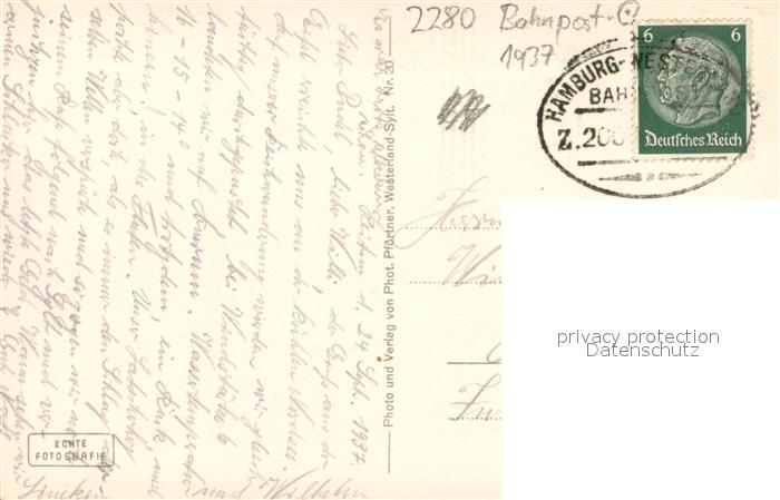 73690574 alte Postkarte Keitum Sylt Am Kliff postalisch gelaufen Bahnpost Erhaltung siehe scans [WerneD78] KatCode: 11110001054133