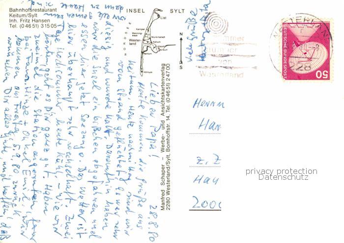 72719368 alte Postkarte Keitum Sylt Bahnhofsrestaurant postalisch gelaufen Erhaltung siehe scans [FriedD77] KatCode: 11110001054133