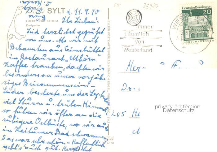 73670624 alte Postkarte Keitum Sylt Dorfpartie postalisch gelaufen Erhaltung siehe scans [WerneD78] KatCode: 11110001054133