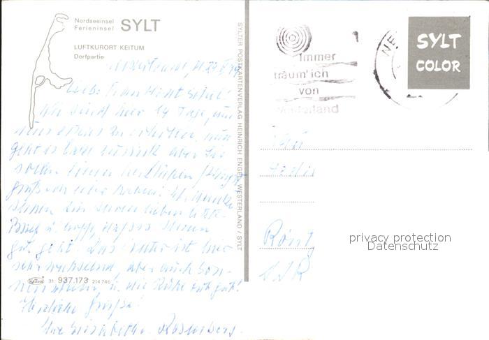 72522474 alte Postkarte Keitum Sylt Dorfpartie postalisch gelaufen Erhaltung siehe scans KatCode: 11110001054133