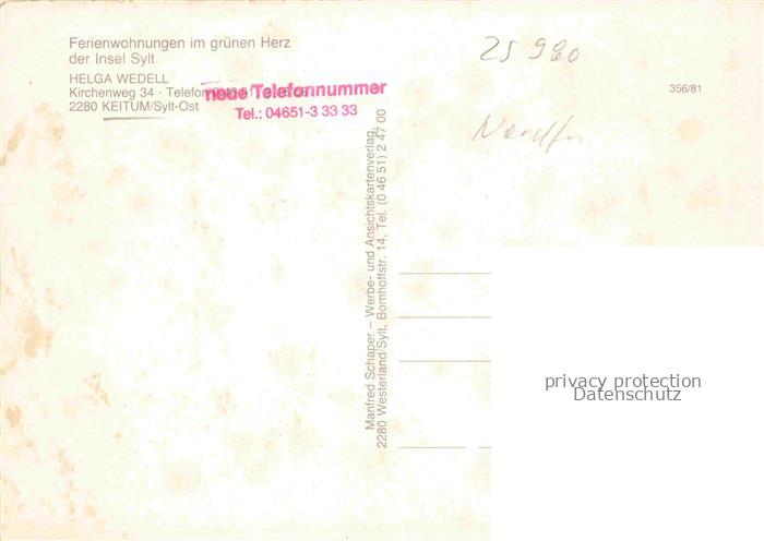 74110153 Keitum Sylt Ferienwohnung mit gruenen Herz Helga Wedell postalisch nicht gelaufen Erhaltung siehe scans [IrynaD87] Iryn Katcode 11110001054133