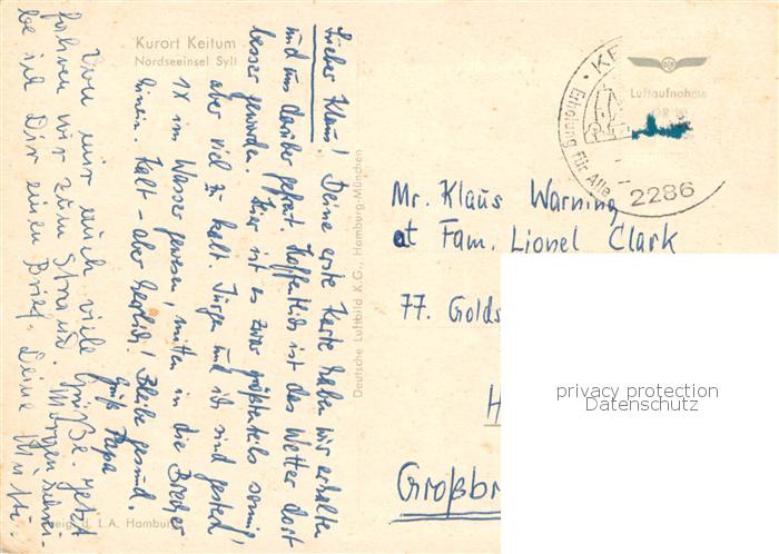73775318 alte Postkarte Keitum Sylt Fliegeraufnahme postalisch gelaufen Erhaltung siehe scans [WerneD78] KatCode: 11110001054133