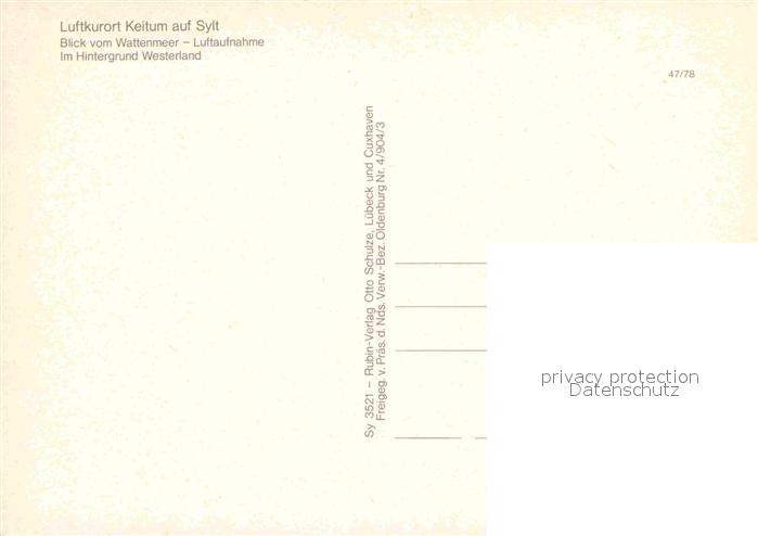 72677051 Keitum Sylt Fliegeraufnahme vom Wattenmeer mit Westerland postalisch nicht gelaufen Erhaltung siehe scans [WerneD78] KatCode: 11110001054133