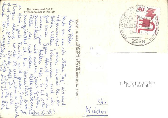 72605757 alte Postkarte Keitum Sylt Friesenhaeuser postalisch gelaufen Erhaltung siehe scans [AndreD76] KatCode: 11110001054133