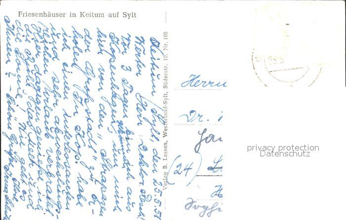 72186931 alte Postkarte Keitum Sylt Friesenhaeuser postalisch gelaufen Erhaltung siehe scans KatCode: 11110001054133