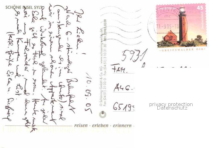 72853752 alte Postkarte Keitum Sylt Kampener Leuchtturm Rantum Hoernum postalisch gelaufen Erhaltung siehe scans [NatalD47] KatCode: 11110001054133