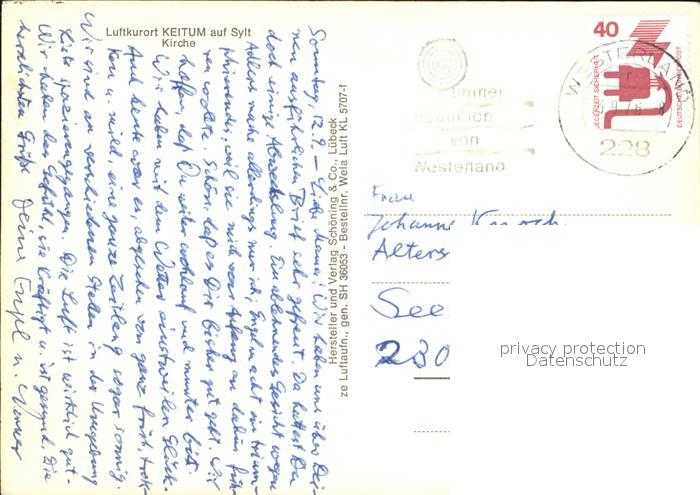 72495861 alte Postkarte Keitum Sylt Kirche Fliegeraufnahme postalisch gelaufen Erhaltung siehe scans KatCode: 11110001054133