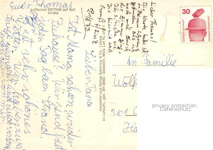 72798804 alte Postkarte Keitum Sylt Kirche Luftkurort Fliegeraufnahme postalisch gelaufen Erhaltung siehe scans [FriedD77] KatCode: 11110001054133