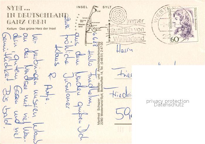 73836774 alte Postkarte Keitum Sylt Kirche Teilansichten Allee Schwimmbad Strand postalisch gelaufen Erhaltung siehe scans [FriedD77] KatCode: 11110001054133