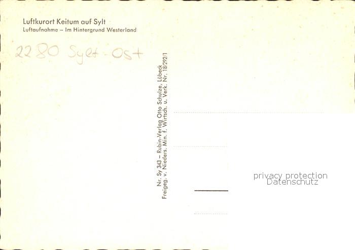 72237041 Keitum Sylt Luftkurort Fliegeraufnahme postalisch nicht gelaufen Erhaltung siehe scans KatCode: 11110001054133