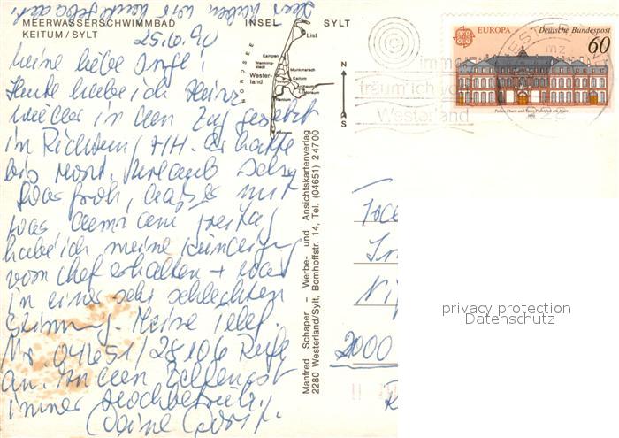 73119765 alte Postkarte Keitum Sylt Meerwasserschwimmbad postalisch gelaufen Erhaltung siehe scans [LiesaD40] KatCode: 11110001054133