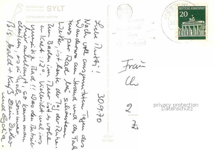 72843549 alte Postkarte Keitum Sylt Meerwasserschwimmbad postalisch gelaufen Erhaltung siehe scans [LiesaD40] KatCode: 11110001054133