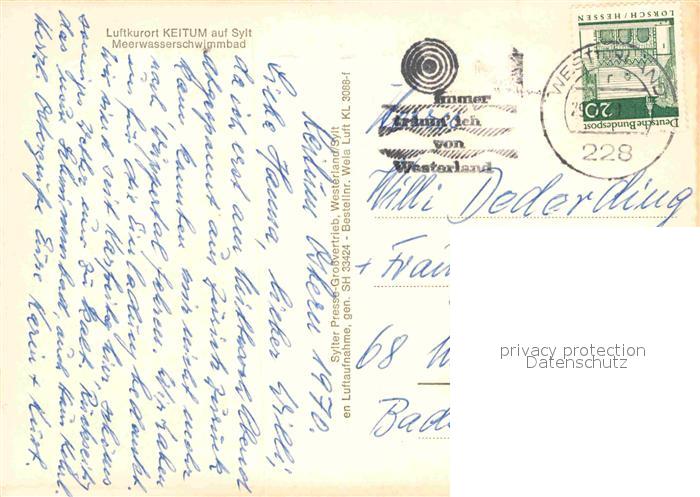 72715540 alte Postkarte Keitum Sylt Meerwasserschwimmbad Luftkurort Fliegeraufnahme postalisch gelaufen Erhaltung siehe scans [FriedD77] KatCode: 11110001054133