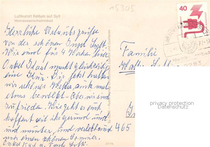 73796447 alte Postkarte Keitum Sylt Meerwasserschwimmbad postalisch gelaufen Erhaltung siehe scans [WerneD78] KatCode: 11110001054133