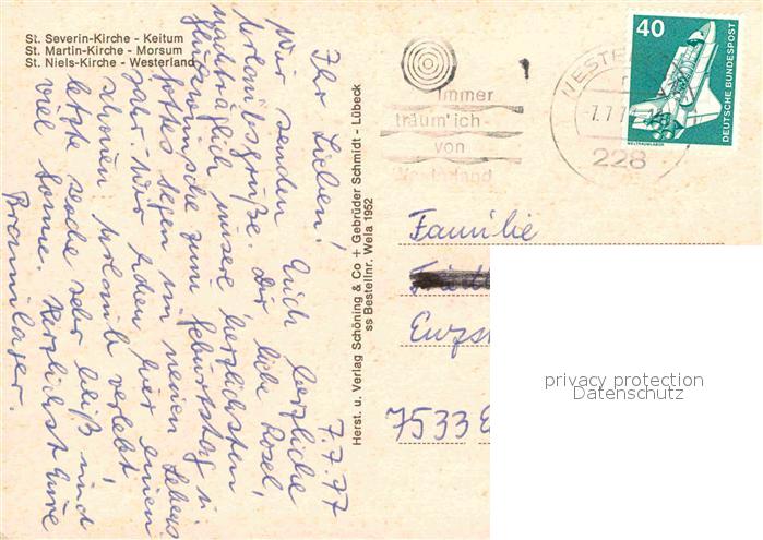 72856669 alte Postkarte Keitum Sylt Morsum Westerland Alte Syster Kirchen postalisch gelaufen Erhaltung siehe scans [LiesaD40] KatCode: 11110001054133