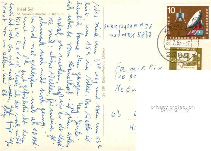 72762923 alte Postkarte Keitum Sylt Sankt Severin Kirche postalisch gelaufen Erhaltung siehe scans [AndreD76] KatCode: 11110001054133